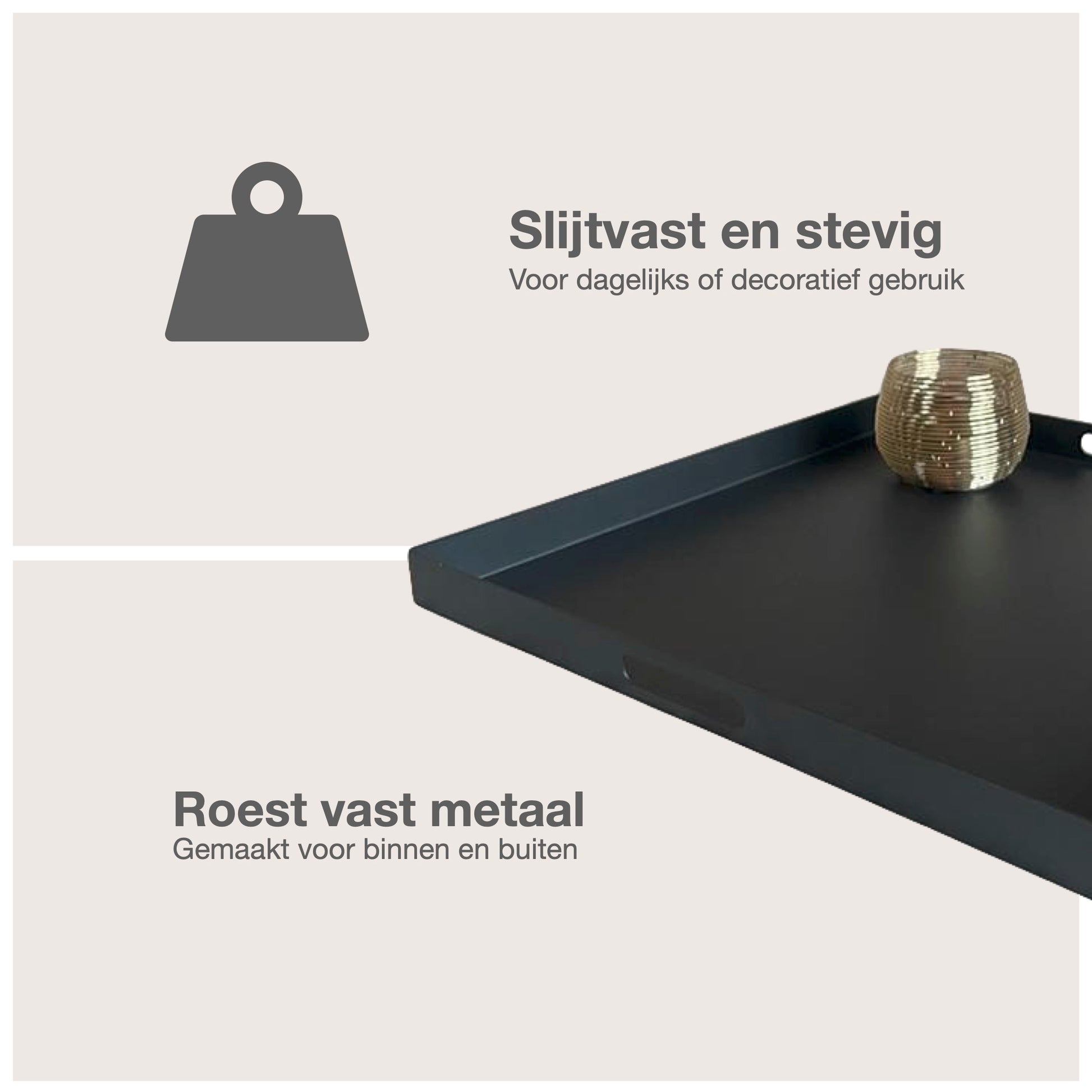 Het Dienblad zwart van het merk GDRN heeft een draagvermogen van maximaal 10 kilogram.